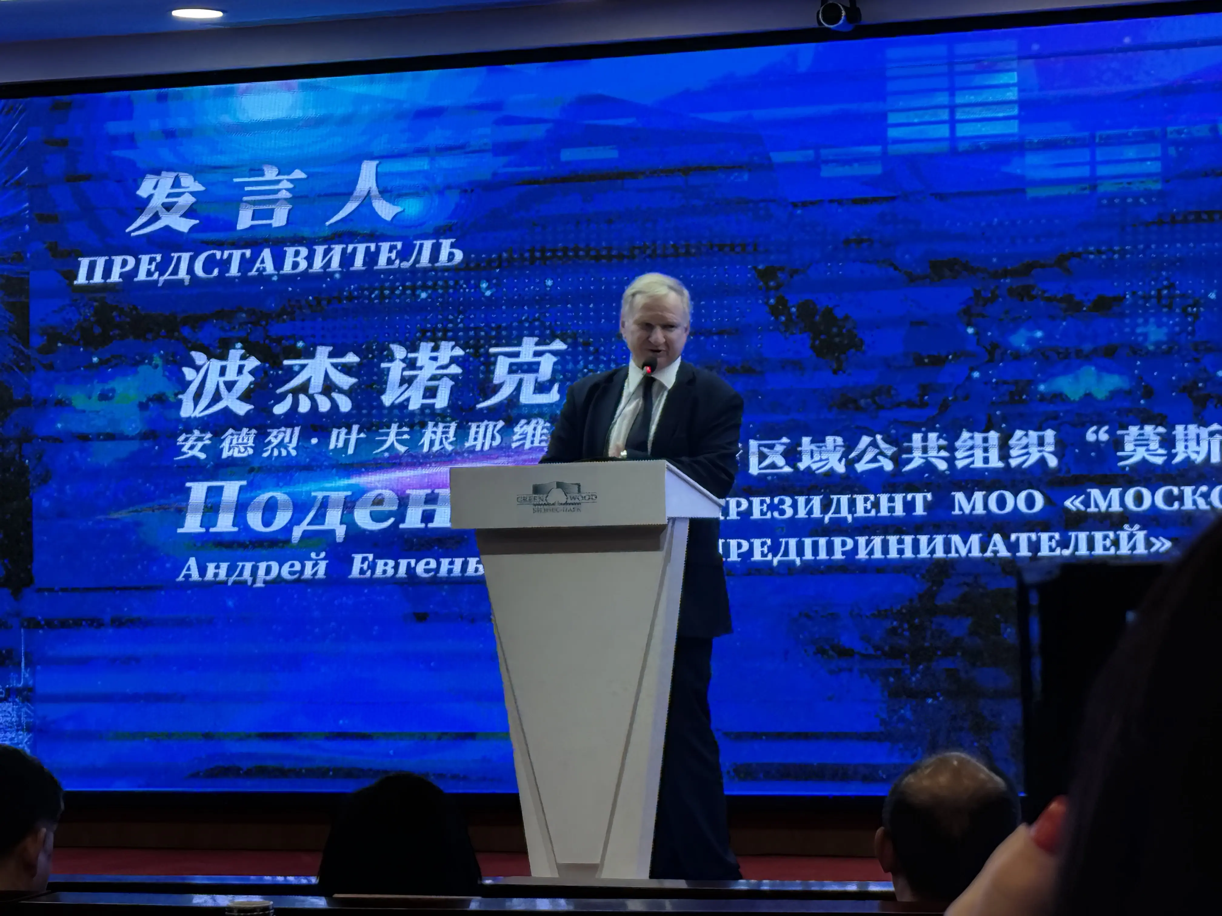 俄罗斯商业议程由莫斯科企业家协会主席安德烈*波德诺克(Andrey Podenok)提出,中国商业季节组织者克拉拉*林(Klara Lin)和谢尔盖*伊万诺夫(Sergey Ivanov)也在会场发言。